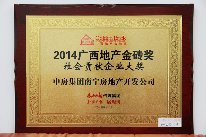 • 2014廣西地產(chǎn)金磚獎社會貢獻企業(yè)大獎