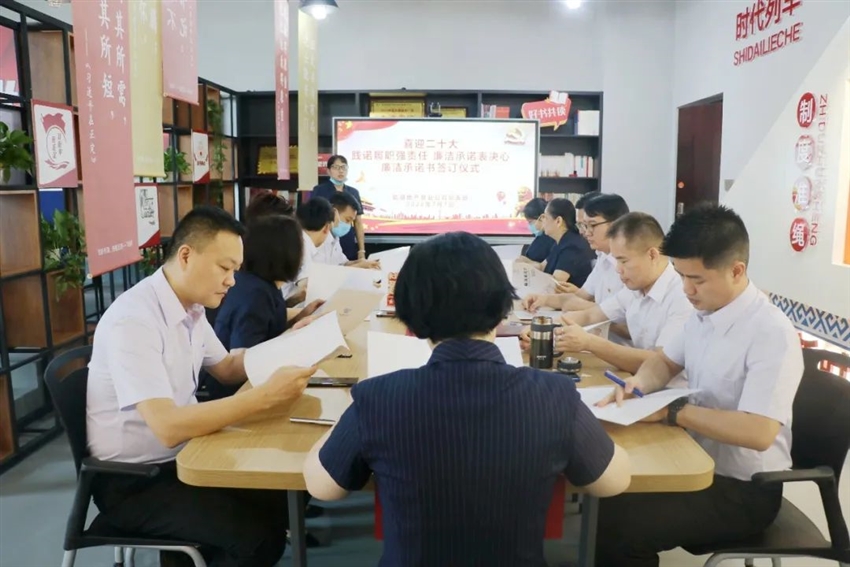 為增加員工廉潔從業(yè)自律意識,使員工從思想上守好廉潔從業(yè)“底線”,支部充分結(jié)合崗位層級具體情況,制定不同的廉潔承諾書內(nèi)容,2022年7月組織公司全員至上而下簽訂《廉潔承諾書》,切實把廉潔從業(yè)的理念和要求根植于員工心中,筑牢干部職工廉潔“防火墻”。