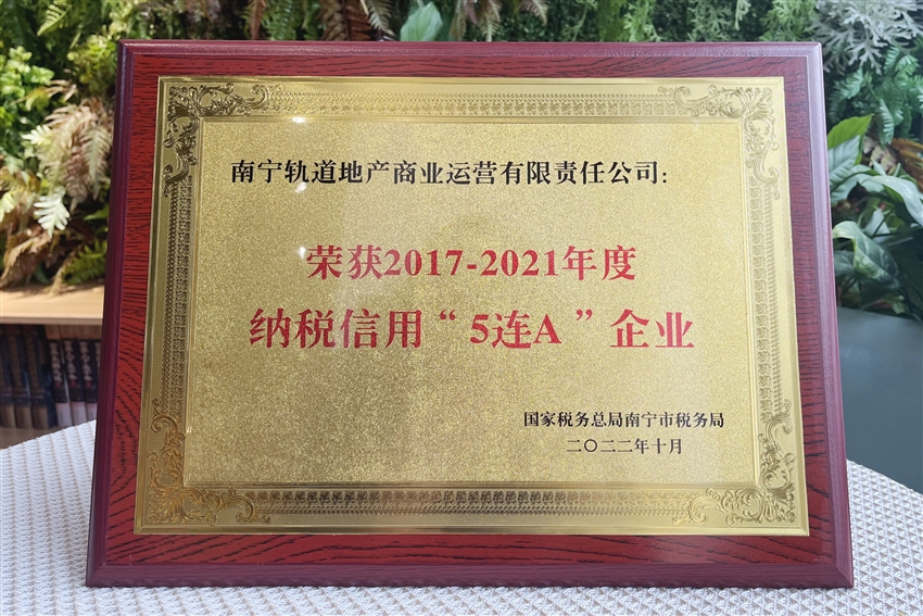 近日,軌道地產(chǎn)商業(yè)公司榮獲國(guó)家稅務(wù)總局南寧市稅務(wù)局授予的納稅信用“5連A”企業(yè)榮譽(yù)稱號(hào)。獲此殊榮,不僅是稅務(wù)機(jī)關(guān)對(duì)軌道地產(chǎn)商業(yè)公司稅務(wù)管理工作的充分肯定,更為軌道地產(chǎn)商業(yè)公司走上高質(zhì)量發(fā)展之路提供了強(qiáng)有力的支撐。