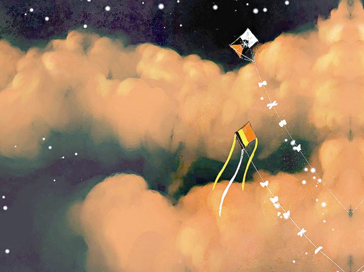 小囡囡就這么仰望著那個高掛在天上的風(fēng)箏,她也不去追,不去搶。因為看著風(fēng)箏還在天上,心里就還有夢。如果把它拿在手上,可能,她就再也不會做夢了。