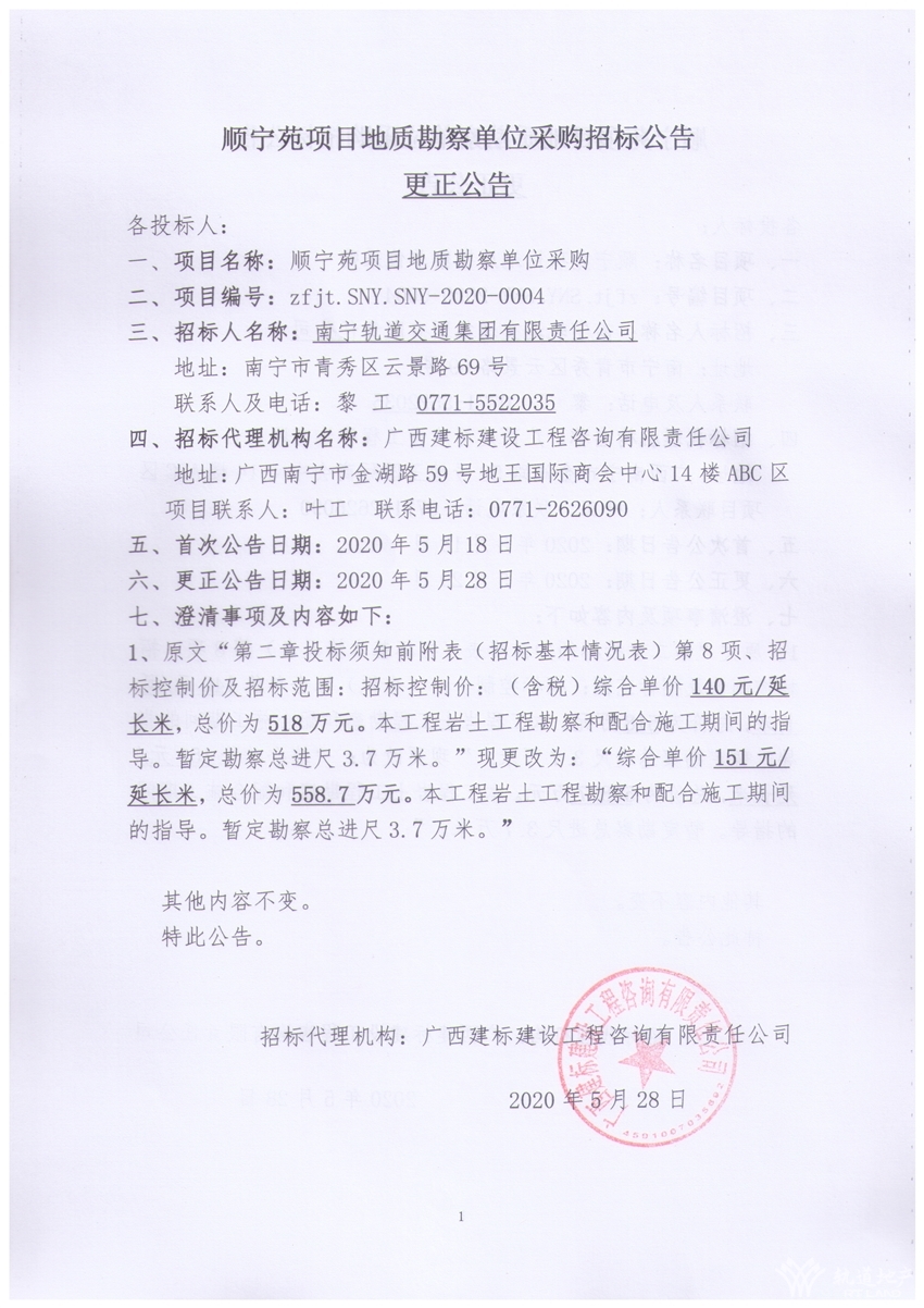 順寧苑項(xiàng)目地質(zhì)勘察單位采購(gòu)招標(biāo)公告更正公告